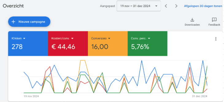 In een periode van iets meer dan vijf weken wisten we 16 conversies te realiseren, met een conversiepercentage van 5,76%.